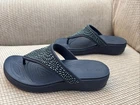 Elevate your summer style with these navy blue Crocs Monterey Diamante sandals. The beaded accents and cushioned wedge heel provide both comfort and style, making them perfect for any casual occasion. These slip-on flip flops are easy to wear and the rubber upper material ensures durability for everyday use. The low heel height of 1-1.9 inches offers a comfortable fit for all-day wear, while the beaded accents add a touch of elegance to your outfit. These sandals are perfect for any woman looking for a stylish and comfortable footwear option for the summer season.