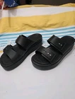 These Crocs sandals are a game-changer—super comfy, stylish, and perfect for all-day wear. The wide fit is roomy, the low wedge gives just enough lift, and the buckle adds a cute detail. Easy to slip on, lightweight, and durable—great for errands or casual outings. Love the black color—goes with everything! A must-have for summer.