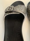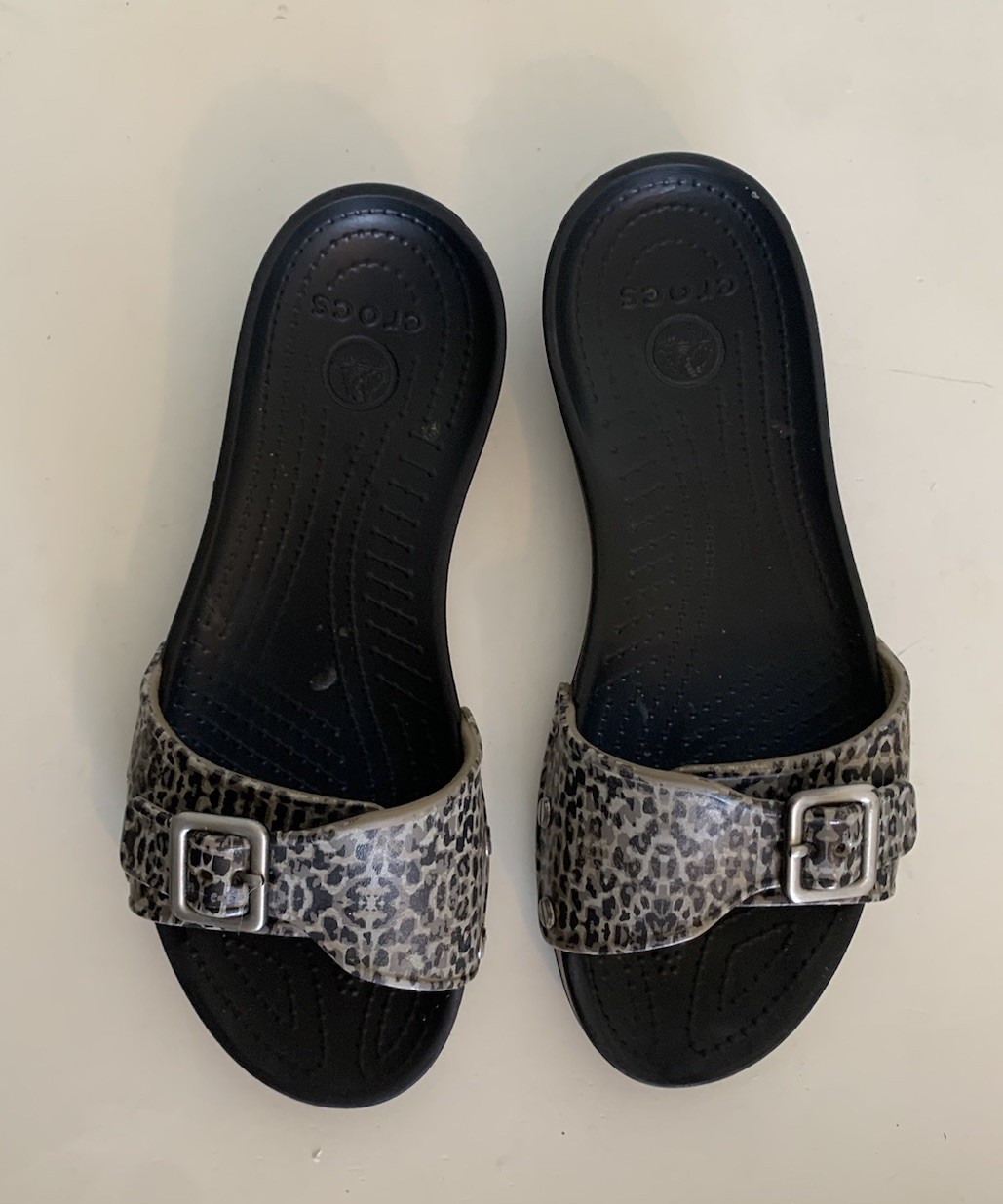All visual flaws shown in photos, normal signs of wear. From a pet-free and smoke-free home. All details shown in photos. Will accept all reasonable offers! Step into comfort and style with these Crocs slide sandals featuring a playful leopard print design. The black and gray slides are made with durable rubber material, both on the upper and insole, providing a comfortable fit that's perfect for everyday wear. These sandals are easy to slip on and off, making them a great option for those on-the-go moments. With a size 6 fit, these slide sandals are perfect for women who want to add a touch of fun to their wardrobe. The anime theme adds a unique touch to the stylish slip-ons, making them a great addition to any outfit. Whether you're running errands or enjoying a casual day out, these Crocs sandals will keep your feet feeling comfortable and looking chic.