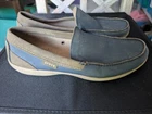 Crocs mens boat shoes comfort loafers blue size 11 15944 great shape preppy The product is a pair of Crocs men's boat shoes in blue, size 11. These comfortable loafers feature a slip-on closure, round toe shape, and rubber outsole material. The shoes are designed for casual occasions and are suitable for all seasons. The Crocs Walu model includes a classic preppy theme with the iconic logo accent. Made of canvas fabric with a synthetic upper material, these shoes provide a comfortable fit with a standard shoe width and fabric lining material. Ideal for a casual and stylish look, these Crocs boat shoes are a great choice for any man's wardrobe.