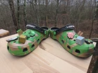 Elevate your casual shoe game with these Crocs x Minecraft Elevated Clogs in green. These limited edition clogs feature a camouflage pattern with Minecraft characters and ankle straps for a comfortable fit. The lightweight design makes them perfect for everyday wear, and the Crocs brand ensures durability. These shoes are customized and come with Jibbitz parts for added fun. They are perfect for casual occasions.