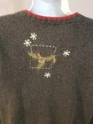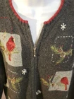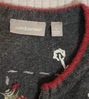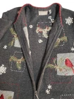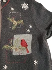 Get into the holiday spirit with this Croft & Barrow sweater, featuring full zip and a round neckline. The design makes it perfect for travel, casual outings, workwear, or business settings. The sweater is made of a blend of 55% ramie, 15% acrylic, 15% nylon, 9% wool, and 6% angora rabbit, making it lightweight and comfortable to wear. The gray color and cardinal, holly and snowflake embroidery add style. The sweater is collarless and features long sleeves, making it suitable for cooler weather seasons. It is recommended to hand wash only to maintain its quality. This sweater is perfect for anyone who loves colorful and stylish holiday-themed clothing including ugly sweaters. Approximate measurements with sweater lying flat: Armpit to armpit 22 - inches Shoulder to bottom hem 24 - inches