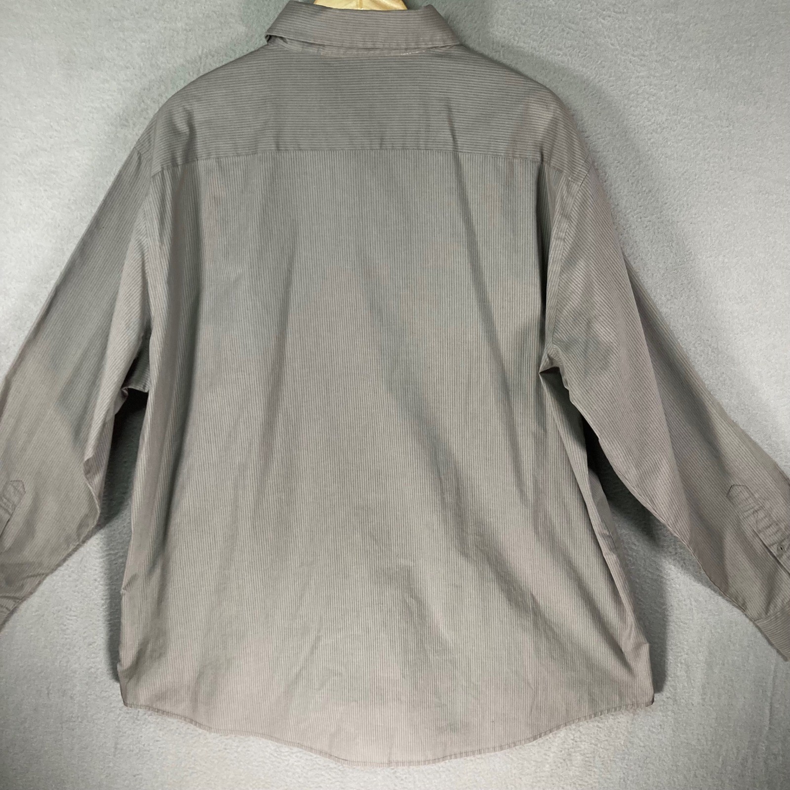 Measurements: • Chest (pit to pit): 28 inches • Length (shoulder to hem): 32 inches • Sleeve length (shoulder to cuff): 26 inches Sleeve Length: Long Sleeve Department: Men Fabric Type: Woven Closure: Button Accents: Button Pattern: Striped Material: Cotton Blend Features: Easy Care Collar Style: Button-Down Neckline: Collared Type: Button-Up Keywords: Croft & Barrow, Men's Shirt, XXL, Button Down, Long Sleeve, Pinstripe, Tan, Gray, Easy Care, Cotton Blend, Casual Shirt, Work Shirt, Business Casual, Men's Apparel, Plus Size