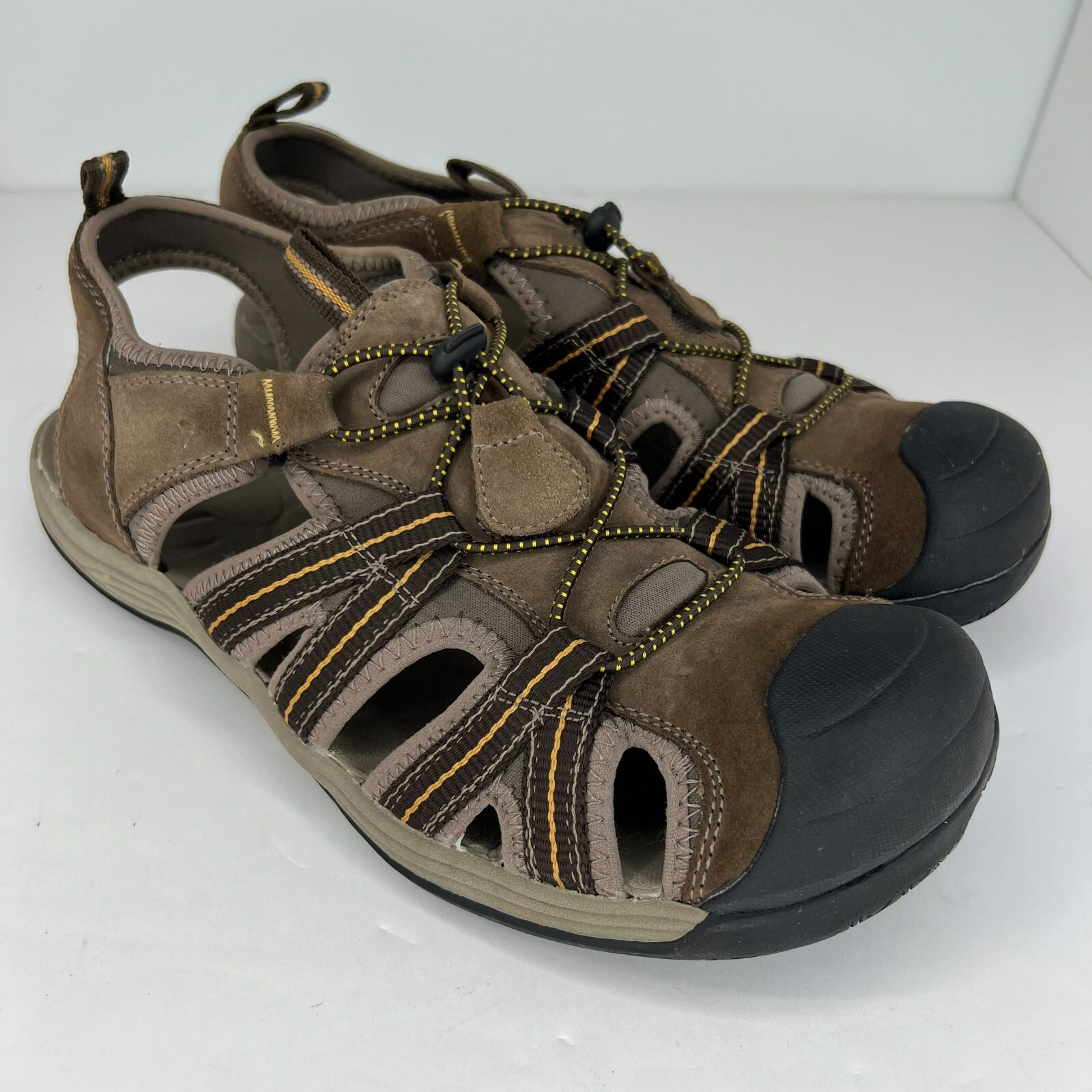 Get ready for your next outdoor adventure with these Croft & Barrow slip-on sandals. Designed for men, these sandals feature a solid pattern and a brown color that will match any casual or travel outfit. The leather upper and outsole material provide durability and comfort, making them perfect for summer, fall, or spring. These sandals have a slip-on closure, making them easy to wear and take off. With a UK shoe size of 11.5 and a US shoe size of 12, they are a perfect fit for any man looking for a comfortable and stylish pair of sandals. Whether you're going on a hike or just running errands around town, these Croft & Barrow sandals are the perfect addition to your shoe collection. 100% CUSTOMER SATISFACTION IS OUR GOAL! Our items are always carefully examined for condition, measured if necessary, and photographed in a climate controlled and smoke-free environment. We make every attempt to accurately describe and clearly picture the items we have for sale. Please, ALWAYS view all of the photos. We value your business and our goal is your complete satisfaction. FAST SHIPPING All items are packaged with care and shipped out the same or next business day via USPS, FEDEX, or UPS with tracking numbers so you are always informed. RETURNS We offer a 30-day return policy. All items must be unused and unopened in the condition in which they were received, with original packaging, and all accessories included for return. REVIEWS - CUSTOMER SATISFACTION - COMMUNICATION We aim to make you happy. After you receive your shipment, please leave a positive review . If you have concerns or questions about your order, please contact us so we can resolve the issue. We will do our best to make you satisfied. THANK YOU FOR YOUR BUSINESS!