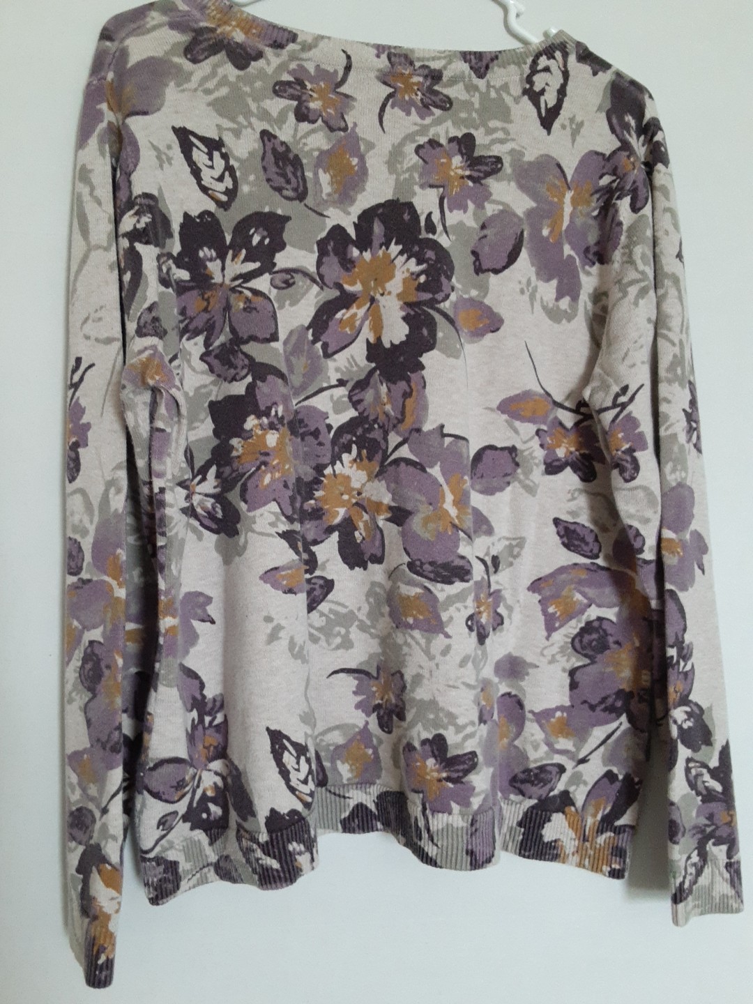 $ 11.29NWT TALBOTS Women's Cozy Gray Sweater with Pink & Cream Circular design Size L