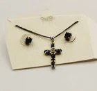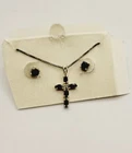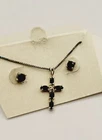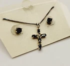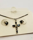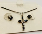 Cross Necklace & Pierced Earring Set Blue Sterling Silver 925