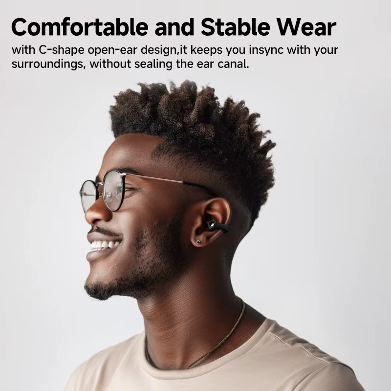 These earphones are a game-changer for workouts and outdoor activities! The open-ear design keeps me aware of my surroundings while delivering crisp, powerful sound. The C-shape clip stays secure even during intense movement, and the dual-connection feature is super convenient. Love how lightweight they feel while packing serious audio quality with those 10.8mm drivers. Perfect balance of situational awareness and immersive sound!
