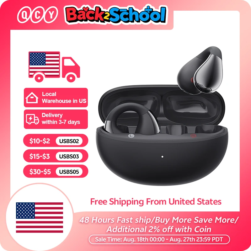 QCY Crossky C30 Ear Clip Earphones Bluetooth 5.4 Wireless Open Ear Sports TWS Earbuds Dual-Connection Earclip Headphones Ear clip Design Earphones: With C-Shape open-ear design, QCY Crossky C30 keeps you in sync with your surroundings, without sealing the ear canal. 10.8mm Dual-Magnet Driver and Advanced Directional Audio: With 10.8 mm dual-magnet high-sensitivity driver unit, the headphones deliver sterling sound quality and clear vocals within a tiny, delicate body. With advanced directional audio technology and auto sound beam adjustment, sounds are transmitted precisely into ear canal, making for a private listening experience. Bass Enhance algorithm: Our dynamic EQ algorithm improves the bass performance, and reduces high-frequency distortion, delivers balanced sound no matter how loud you turn it up. Multipoint Connection and Bluetooth 5.4: You can connect the earbuds to two devices at the same time. Seamless switch between them with simply one click; The latest Bluetooth 5.4 technology ensures faster transmission and more stable connection. 25 Hours Battery Life: Our earphones offer battery life of 25 hours with charging case, On a single charge, you can enjoy up to 5.5 hours of playback. QCY APP and Personalized EQ: Enjoy personalized listening with customized EQ options on QCY APP. Style It Your Own Way The headphone features an elegant matte texture paired with a mirror-like sheen finish on the acoustic ball, making them a chic accessory for any outfit. Open Up Your Ear With C-Shape open-ear design, QCY Crossky C30 keeps you in sync with your surroundings, without sealing the ear canal. 12° Non-Symmetry Design For easy one-handed wear Flexible Ni-Ti Memory Alloy With a soft silicone finish, the arm fit the majority of ears. Stable and Secure Fit Clip-on for stability while on the move. Wrap Around Your Ears Fits perfectly alongside glasses and other accessories. Minimised Sound leakage With advanced directional audio technology and auto sound beam adjustment, sounds are transmitted precisely into ear canal, making for a private listening experience. Vibrant and Clear Audio With 10.8 mm dual-magnet high-sensitivity driver unit, the headphones deliver sterling sound quality and clear vocals within a tiny, delicate body. Bass Enhance algorithm Our dynamic EQ algorithm improves the bass performance, and reduces high-frequency distortion, delivers balanced sound no matter how loud you turn it up. Noise Cancelling Clear Calls The headphone is built with a noise-reduction microphone to deliver crystal-clear calls. 25 Hours Long-Lasting Listning Listen up to 5.5 Hours using the earbuds alone; total 25 Hours battery life with charging case. More Feature: Seamless Dual-Device Connections, IPX4 Water-Resistant, Bluetooth 5.4, Support QCY APP. What's in the Box: Earbuds * 1 pair Charging case *1 User Manual * 1 Type-C charging cable *1 Specifications: Product Name: QCY Crossky C30 Type: Open Ear Color: Black/Purple/White Driver: φ10.8mm dual-magnet driver Audio codec: AAC/SBC Call noise cancellation: Dual-mic ENC call Bluetooth version: Bluetooth 5.4 Effective bluetooth range: 10m Charging Case Battery Capacity: 400mAh Battery capacity: 32mAh(earbud) Battery life: 5.5h(earbuds), 25h with charging case Cable charge time: 2h Charging port: USB Type-C Weight: 5g (single earbud) FAQ: Q: What should I do if the headset received unable to turn on? A: Confirm that the charging case has power left, press the button on the case and check if at least one LED is illuminated. If charging case power off, please put the earphones in charge case and charging for 1 hour. Before charging, please Remove the stickers on new earphones. Connect the case with your included USB cable and plug it into a USB power source. Q: What should I do if Sound comes from only one earphone? A: Put both earphones back into the charging case and close the cover, then take them out again to check whether both ears have sound. If only one earphone still has sound, please restore the factory settings for both earphones. Q: How to solve the problem that the mobile phone prompts that it cannot connect? A: Delete the pairing record on the mobile phone, and then search for pairing and connect again. Q: How to solve the problem that there is no sound when listening to music or calling? A: There is a settings icon on the right side of the Bluetooth connection name on Android phones. Click to enter, turn off the mobile phone audio and media audio, and then turn them on again. If there is still no sound, please re-pair the earphones with the mobile phone. Q: Why is there a delay in video or games? A: Affected by factors such as the use environment, network and mobile phone Codec, there will be different degrees of delay when the mobile phone transmits audio data to the earphone. Q: How to solve the problem of stuck or intermittent sound? A: If there are a lot of Wi-Fi, 5G or 4G signals, high-power electrical appliances around, it may cause stuck and intermittent sound. Please Change the environment or re-pairing can solve the problem. Other Tips: 1. Before using the earbuds, please read the manual carefully and keep it for future references. 2. The earbuds need to be fully charged prior to first-time use. 3. lf the earbuds are left unused for over two weeks, please recharge. 4. Please use the chargers made by qualified manufacturer. 5. lf earbuds fail to be found by phone, please re-turn them connectable or restore factory settings. 6. lf a program error of phone occurs, please turn off and on Bluetooth function or reboot the phone.