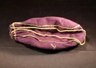 Classic 9" (22.86 cm) purple felt bag with yellow gold embroidery, exposed serge stitching and twisted cord. In good used condition with minor fading to purple. Add this classic bag to your collection today!
