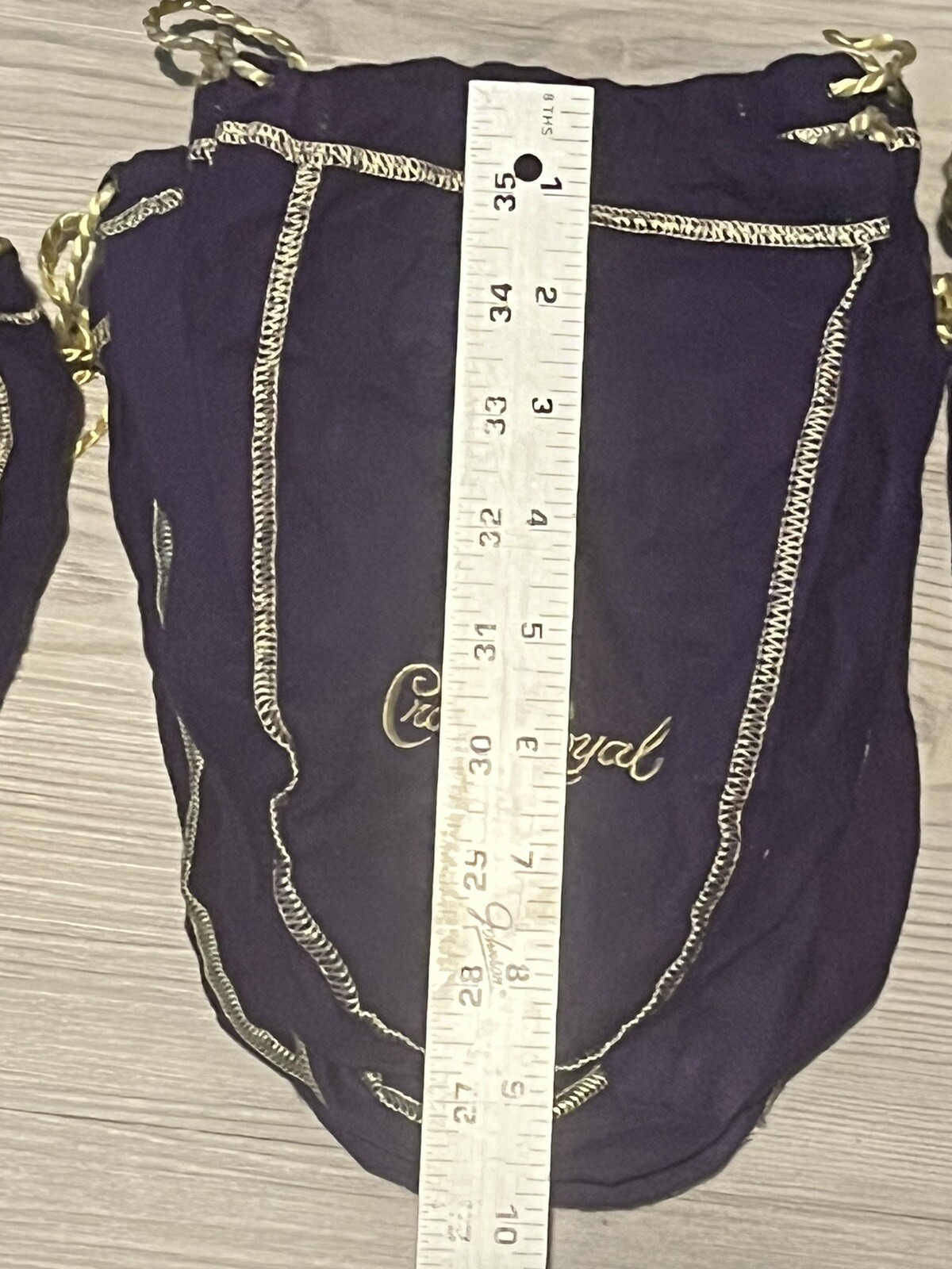 This is a lot of 82 Crown Royal bags. There are (sizes are my best guess): 60 Large 1,75 L bags 10 Small 750 ML bags 6 Smaller 350ML bags 2 X-Small bags 4 specialty bags (black, green, orange purple holiday).