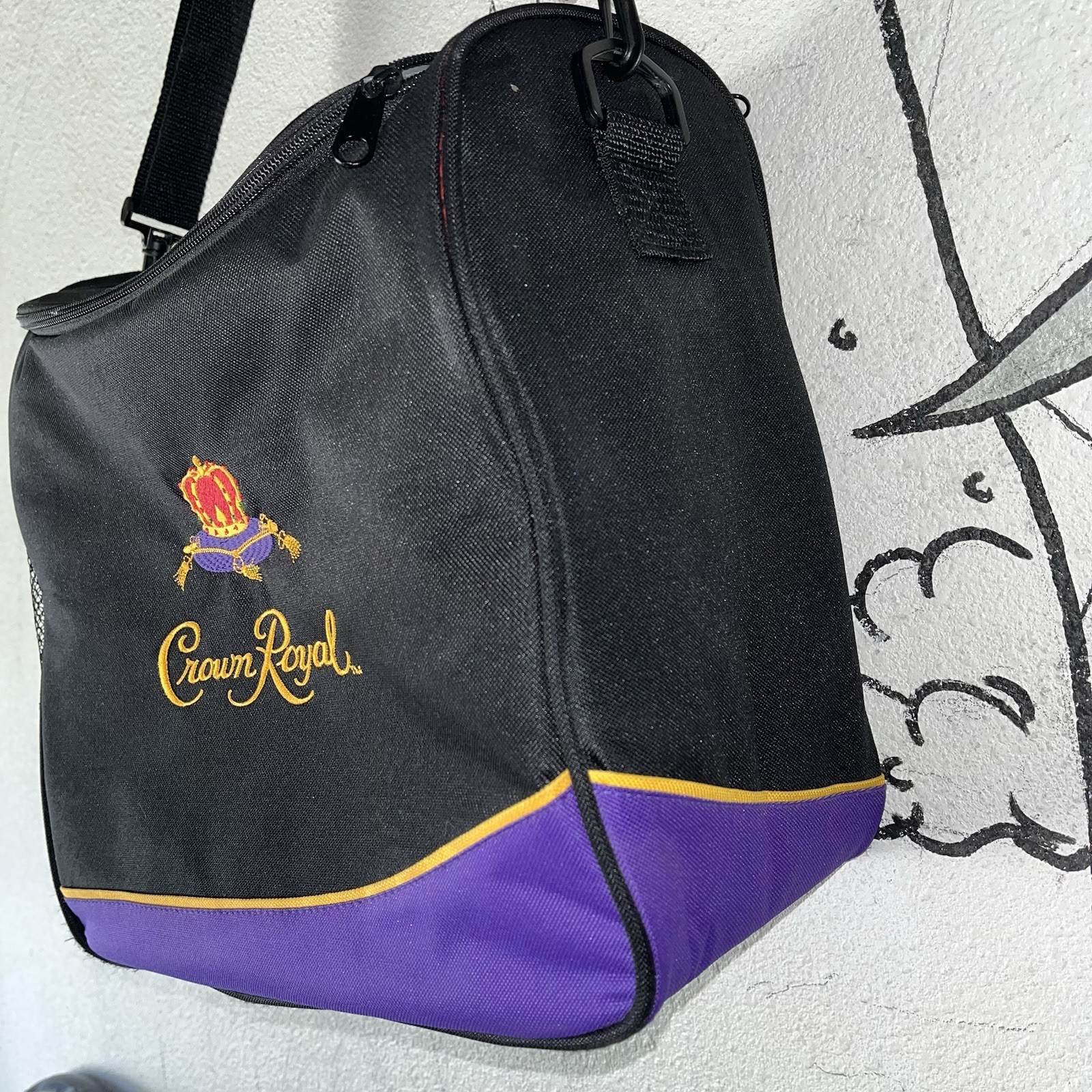This Bag Cooler is a unique addition to your collection of items. It has a distinct purple color with the Crown Royal logo on it, making it an original piece. The bag has been well-maintained and is in great condition, perfect for any use. The cooler is perfect for those who want to keep their drinks cool while on the go. It has a shoulder strap, making it easy to carry around.