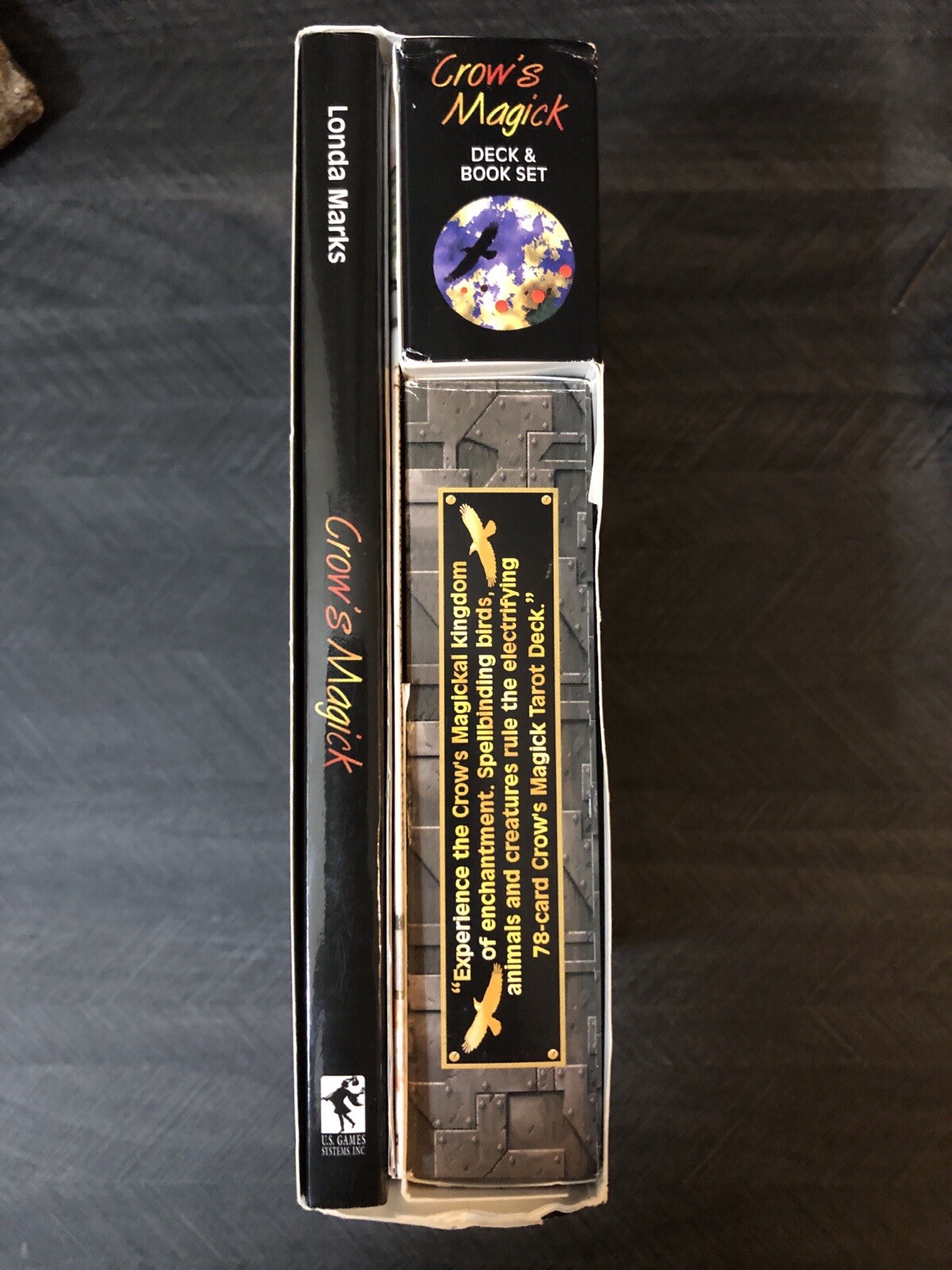 Crows Magick Tarot complete box set includes complete tarot deck with little white book, large guidebook (rare) and US games tarot spread sheet. Deck, guidebook and spread sheet are in amazing condition. Box that the set comes in shows some wear from storage. Tarot and oracle lover, decluttering, check out my other listings.