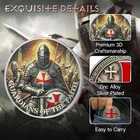 Item Details This striking Templar Guardians of the Faith Coin captures the essence of the medieval Crusader knights with its bold design and high-relief craftsmanship. Made from zinc alloy with antique silver plating , this coin is perfect for collectors, history enthusiasts, or anyone drawn to the heroic symbolism of the Knights Templar. Front Design: The front of the coin features a powerful 3D image of a fully armored Templar knight , holding a shield and sword, ready to defend the faith. The knight’s armor is adorned with the iconic red cross, symbolizing the courage and dedication of the medieval Crusaders. The inscription “GUARDIANS OF THE FAITH” encircles the design, emphasizing the knight's role as a protector of faith and values. Back Design: On the reverse side, the red Crusader cross dominates the design, surrounded by four smaller crosses, representing strength, unity, and faith. The antique silver finish and intricate border pattern give the coin a historical and timeless look, making it a perfect addition to any collection. Key Features: Size: 40mm diameter, 3mm thickness – a solid, substantial coin that feels weighty in hand. Material: Crafted from zinc alloy with antique silver plating , providing a durable and visually impressive finish. Design: High-relief 3D Templar knight on the front, with a bold red Crusader cross on the back, symbolizing strength, faith, and protection. Unique Gift: Ideal for history enthusiasts, those of faith, or anyone who admires the Templar knight's bravery and commitment to their cause. Add this Templar Guardians of the Faith Coin to your collection or gift it to someone special. It’s more than just a coin — it’s a symbol of courage, protection, and unwavering faith. Amazing Treasure Still wondering what to add in a collection? A special and long-last memory gift? Or the connection between you and your most important one. You can always find your own treasure here. Packing Each coin will be packed up individually with a plastic case suit in opp bag. Shipping We'll start shipping as soon as possible within 2 business day normally. Tracking will be available after. Feedback We try to make sure ALL customers are satisfied with our services, if you do, a POSITIVE feedback is appreciated, thank you very much. And we always leaving a positive one for customer when item is delivered successfully. Contact Us Feel free to contact us at any time, we're happy to help. You can reach us by eBay or E-mail. Have a nice day!