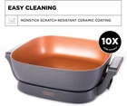 CRUX Electric Skillet with Glass Lid - Nonstick Scratch Resistant Ceramic Pan, Extra Deep with Removable Temperature Probe, 12" x 12", 1400 Watts ELEVATE YOUR KITCHEN GAME: Effortlessly master the art of cooking with this elegant electric frying pan. With a 6-quart volume, a strikingly deep 3-inch interior, and 50% more capacity, this sleek appliance ensures flawless cooking results every time COOK FOR A CROWD: CRUX electric fry pan features a non-stick copper ceramic coating that is ten times more durable than others and metal utensils safe. The large 12" x 12" surface lets you cook up a storm - perfect for larger meals and family gatherings PRECISION & VERSATILITY: Explore a world of possibilities. Our extra deep skillet boasts precision temperature control that can be adjusted up to 400 degrees, and a 1200 watt heating system that allows for quick preheating. Deep-fry, simmer, and more HEALTHY & EASY TO CLEAN: Indulge in your favorite dishes without any of the guilt with this large electric skillet, which requires much less oil and is completely PTFE/PFOA free. The temperate glass is dishwasher safe and cleaning it up is a breeze FOR THE MODERN HOME: CRUX electric skillets are crafted using the finest materials and cutting-edge technology. With their stunning copper accents, they not only add a touch of elegance to your kitchen but also make for an ideal gift for any occasion