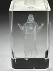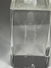 Crystal Art Glass 3D Laser Etched JESUS Cube Paperweight 3"x2"x2"