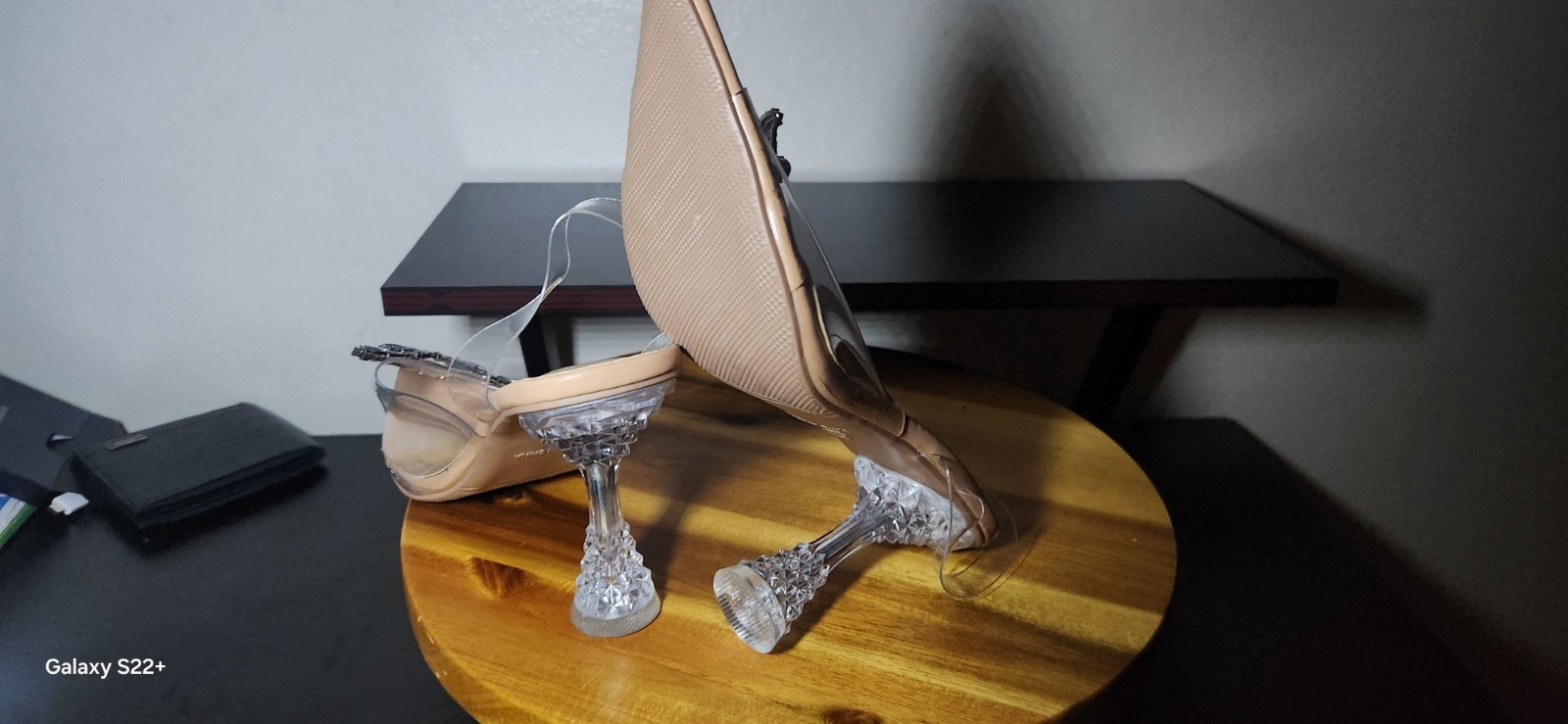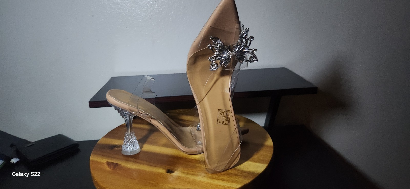 BRAND NEW BARELY WORN CRYSTAL HEELS TRANSPERENT WITH CRYSTAL BUTTERFLY CHAMR SIZE 5.5 WOMENS US