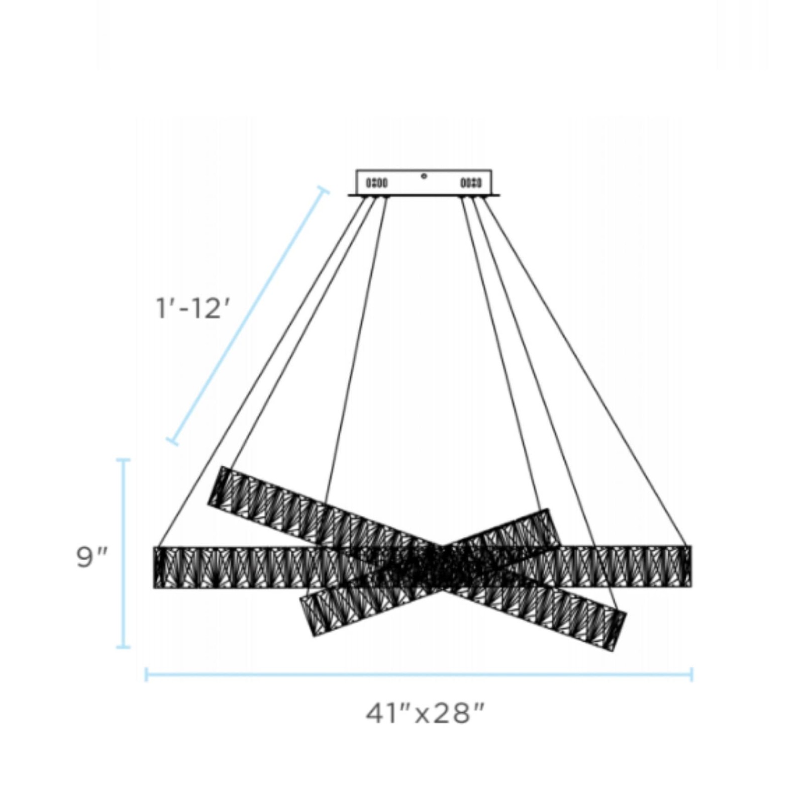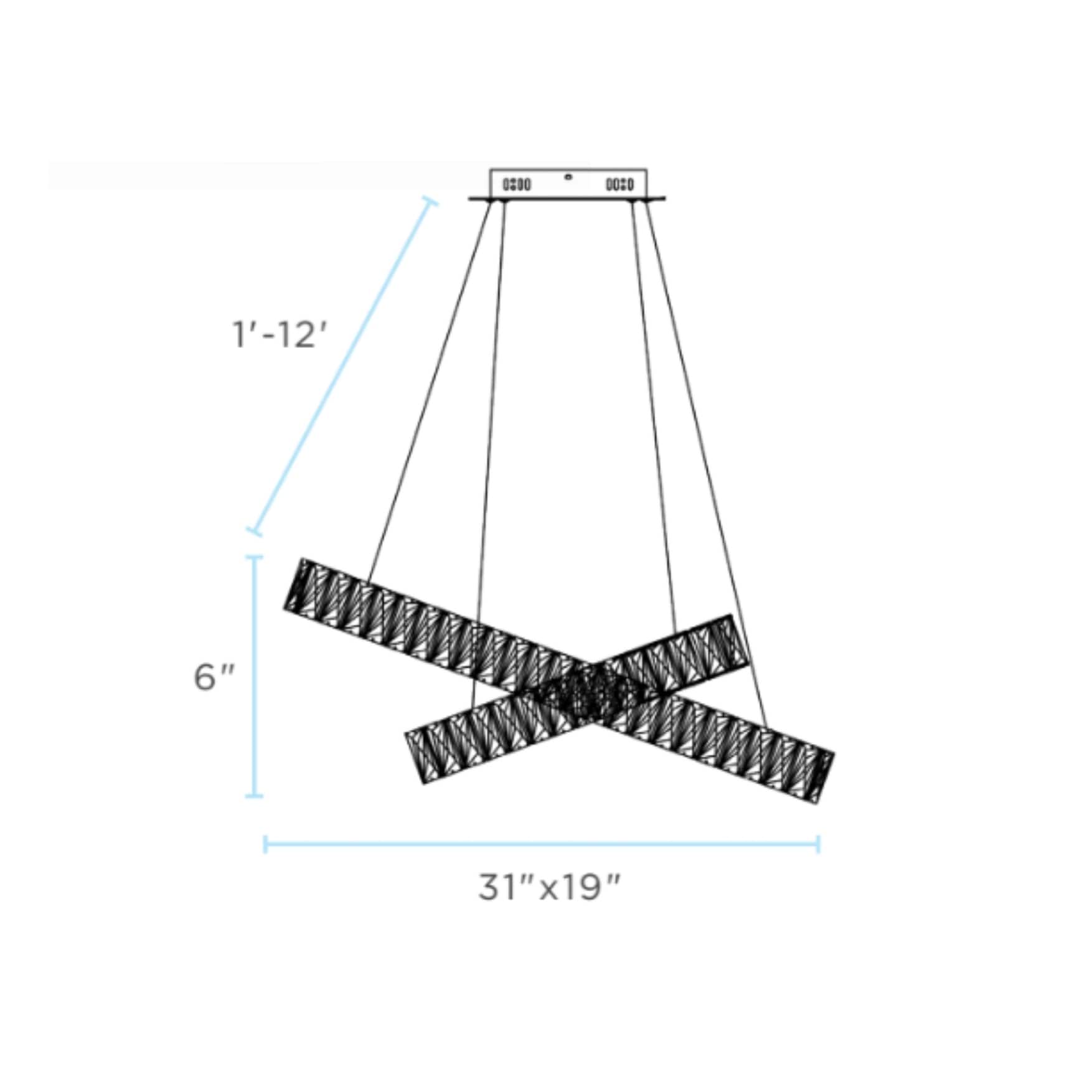 This Crystal Elegance LED Chandelier is a timeless piece that adds perfect dash of modern décor to any home. Finesse Decor's chandelier features three oval rings that can be adjusted to your liking, allowing you to create the perfect décor to feature in your dining room.This Finesse Decor piece is made from high end crystal and chrome metal finish. Each of the three ovals has an LED strip encased by crystals. The crystals are on both the inside and the outside of the oval, giving it a luxurious and glamorous look. When this piece is lit it emits the beautiful reflection of the crystals. This fixture comes with a round canopy that measures 10" in diameter and 1.5"in height. The fixture also has adjustable wires so that you can shorten or lengthen the measurement according to your needs, Free Shipping Over $49.99* Details Crystal Elegance Integrated LED Chandelier Product Description: This Crystal Elegance LED Chandelier is a timeless piece that adds perfect dash of modern décor to any home. Finesse Decor's chandelier features three oval rings that can be adjusted to your liking, allowing you to create the perfect décor to feature in your dining room. This Finesse Decor piece is made from high end crystal and chrome metal finish. Each of the three ovals has an LED strip encased by crystals. The crystals are on both the inside and the outside of the oval, giving it a luxurious and glamorous look. When this piece is lit it emits the beautiful reflection of the crystals. This fixture comes with a round canopy that measures 10" in diameter and 1.5"in height. The fixture also has adjustable wires so that you can shorten or lengthen the measurement according to your needs, Since each wire is independently adjustable, you can use this fixture in a sloped ceiling by having a shorter wire and a longer one. All rings are independent from each other, thus allowing you to create an unique chandelier to fir your space perfectly. You can crisscross them, slant them, or put one on top of the other. Their exact measurements are: Large ring size41" x 28" Medium ring size31.5" x 20" Small ring size19" x 9.5" Round Canopy Diameter 10" x 1.5" The chandelier is made with a durable LED strip that is built to last 30,000 hours of use. This is the equivalent of having it on 24 hours a day, 7 days a week for over 3 years. In most households this chandelier will last for over 10 years. Once the LED dies, it can also be replaced by an electrician. Specs: MaterialMetal and Crystal Integrated LED 3 Strips 85 Watts 4000K 7650 Lumens Weight80 lbs Hanging Length (wire info)1'-12' Adjustable Crystal Size (each)30 x 75mm
