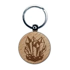 Crystal Geode Engraved Wood Round Keychain Tag Charm
