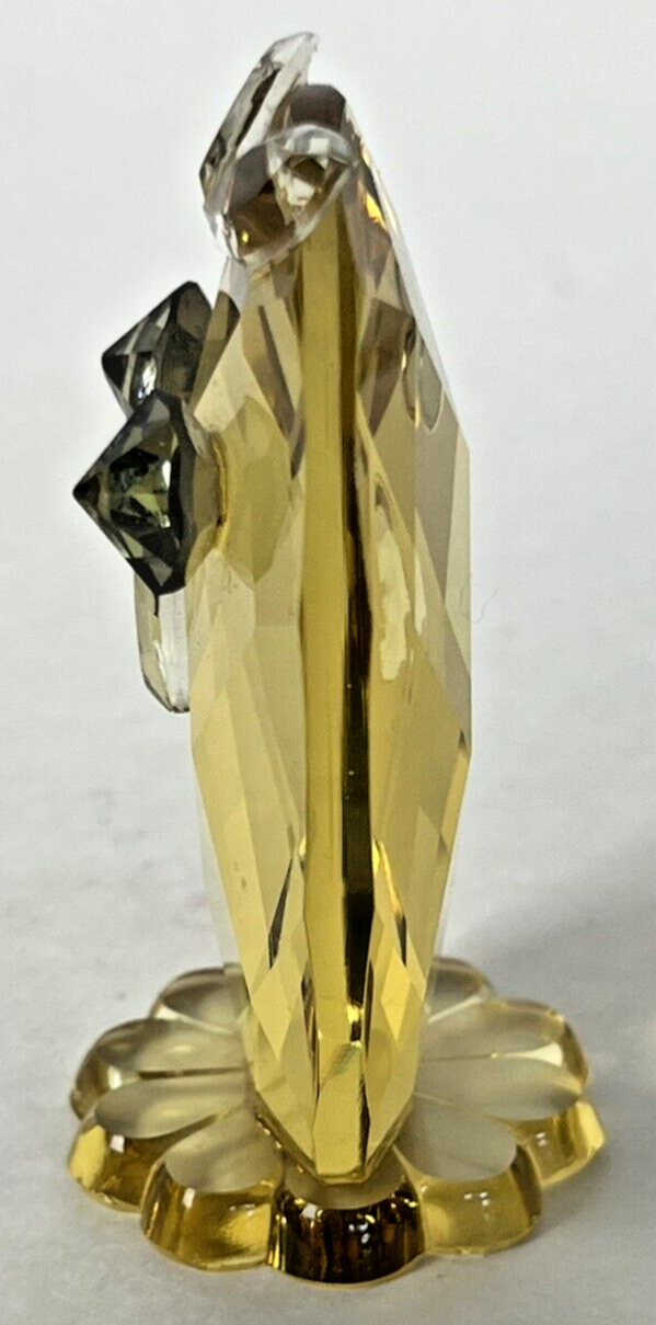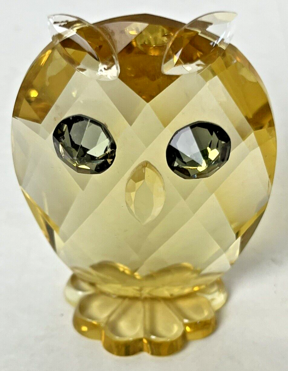 Small Owl Bird Figurine Yellow Crystal Paperweight Wildlife Desktop Decoration Right eye and left side has some minor scuffs see photos