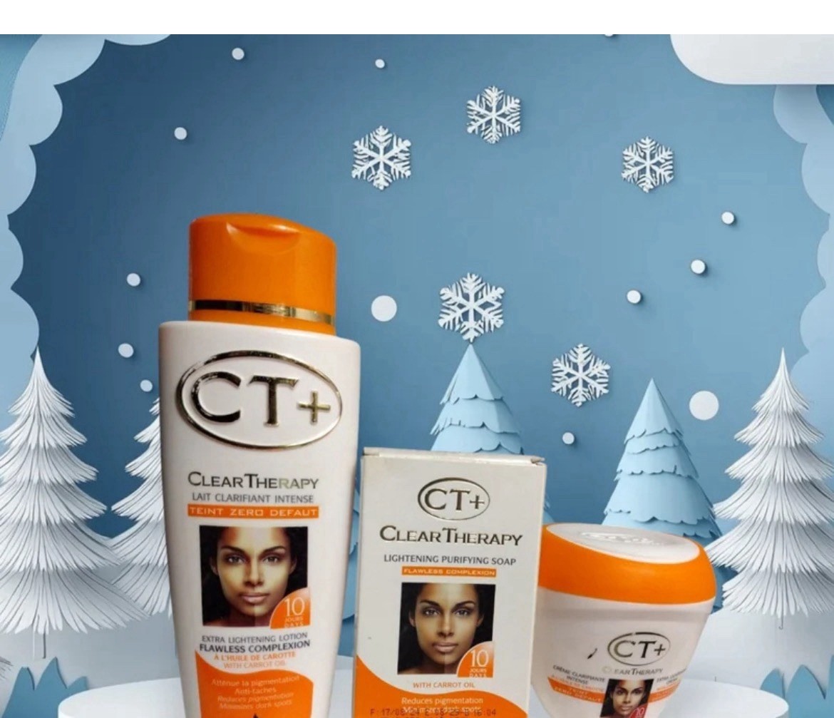 The Ct Clear Therappy Extra Lightening Skin Cream, Lotion, and Soap Set by PLUS is designed specifically for daily use to target dark spots. The formulation includes glycerin, providing hydration for the skin. With a UVA protection of 1-star, this set is ideal for achieving a brighter and clearer complexion. The compact set includes all the necessary products for a daily skincare routine, making it convenient for users to treat their skin effectively.
