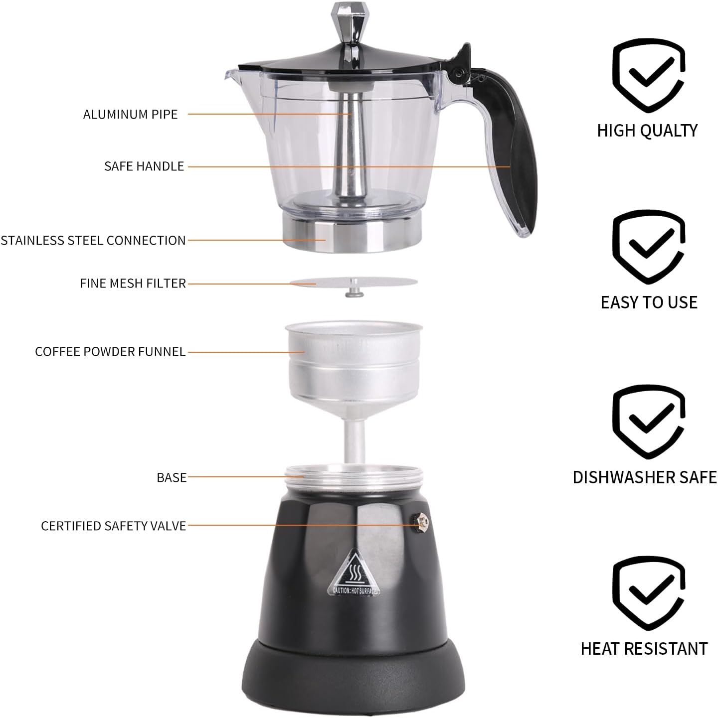 Store New Arrivals Add to Favorite View Feedback Contact Cuban Coffee Maker, 6 or 3Cup Electric Espresso Coffee Maker, Portable Cafeteras Electricas Modernas, Electric Moka Pot with Detachable Base & Overheat Protection, Coffee Gift for Home Travel Description Item model number Espresso Maker Style Modern Number of Items 1 Item Weight 26 Pounds Wattage 480 watts Unit Count 1.0 Count Manufacture Year 2025 Special Feature Auto Shut-Off, Detachable Base, Permanent Filter, Portable Model Name Espresso Maker Specific Uses For Product Cappuccino, Espresso, Latte, Mocha Customer Package Type Standard packaging for color boxes Item Weight 2.56 pounds Human Interface Input Buttons Capacity 6 Cups Material Aluminum Filter Type Reusable Exterior Finish Metallic Color Black Coffee Maker Type Espresso Machine Coffee Input Type Ground Operation Mode Semi-Automatic Voltage 120 Volts Recommended Uses For Product Backpacking, Camping, Hiking, Traveling Included Components Filter Product Dimensions 5.12"D x 7.48"W x 10.63"H 【Luxury Transparent Container】LAOION coffee espresso machine for home with clear transparent top. You can monitor the espresso coffee situation and savor the entire brewing process, making the best traditional espresso easy. 【Convenient & Fast】Without complicated operation and heat stove, just fill the boiler with fresh water until reaching the safety valve(visible inside the boiler), next fill the funnel filter with good quality, medium-ground coffee, then tighten the coffee maker and rest it on the base, finally press the switch wait 5 minutes and you can enjoy an authentic Italian Moka coffee. 【Safe & Food-Grade Material】This cuban coffee maker electric's upper pot is made of BPA free&Heat-resistant plastic, lower pot is made of premium food-grade aluminum, non-toxic and rust-proof. And it have 2 auto-shut off to prevent overheating. One is that when the pot leaves the electric base it will automatically turn off the power supply, and the other is that when it is heated to boiling point, it will also automatically stop heating. 【6-Cup Moka Pot (300ml)】 – Ideal for Rich, Authentic Espresso.This classic stovetop brewer makes 6 servings (about 1.75oz each) – the traditional Italian way to enjoy strong, aromatic coffee. The 300ml capacity is designed for small espresso cups (not standard mugs), delivering concentrated flavor in every drop. Pro tip: Fill the base with water just below the safety valve, use finely ground coffee (no tamping!) for best results. 【Quick Tips to Prevent Leaks】1.When adding water, NEVER fill past the safety valve - this is the #1 cause of spills. 2.For coffee grounds, just spread them evenly - don't pack or overfill. 3.Before brewing, always twist the top and bottom chambers until snug (finger-tight is enough!). These simple steps keep your moka pot leak-free. Happy brewing! Product Description Electric Espresso Maker Without complicated operation and heat stove,Just 5 minutes you can enjoy an authentic Italian Moka coffee. Transparent Containe You can easily check the situation of espresso and savor the entire brewing process. Coffee Filter Funnel Food-grade aluminum filter with good corrosion and easy to clean. ABOUT US We offer the best prices around on high quality products. Our E-store includes media such as books, movies, music and games while offering electronics, toys, sporting apparel, clothing, tools, general home, garden items and more. SHIPPING We are always working hard to ensure your package arrives as soon as possible. Please understand that some factors like weather, high postal traffic, and the performance of shipping companies are outside of our control. We offer free shipping to the lower 48 states and ship within 2 business days of payment, usually sooner. We do not accept P.O. Boxes. Please provide a physical address. For shipping outside of the continental USA, we only use eBay's Global Shipping Program.The item is shipped to KY and then sent to the rest of the world. International customers are responsible for all duties and taxes. Continue to check out in order to calculate costs for shipping the item to your country. Messages regarding eBay's Global Shipping Program MUST be directed at eBay EXCLUSIVELY. RETURNS We offer a 30-Day Return Policy on items which you are not completely satisfied with. You have the option for a full-refund or an exchange of the item. No returns are available on items shipped outside of the USA. PAYMENT We accept PayPal. CONTACT US This page content is yet to come Please ad us to your favorite seller and visit again later Thank You CUSTOMER SATISFACTION We try our very best to make sure every customer is completely satisfied. If there's a problem, message us! We're happy to help. WE ACCEPT Copyright © 2021 AutoDS. | All Rights Reserved