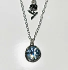 Available is a cubic zirconia pendant set on a silver plated stainless steel chain necklace that will not tarnish or fade. Can be worn daily or in the shower with minimal care. The pendant is 12mm in diameter. Includes a pair of cubic zirconia earrings. New & unused. Comes in metallic gift boxes.