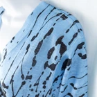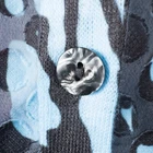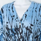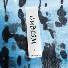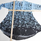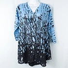 Cubism 3/4 Sleeve Button Front Tunic Top * Condition: Good pre-owned condition. There are a few snags and pulls. No stains or holes. Please see photos. * Size: Small * All measurements are approximate and taken lying flat. Please see photos as well. * Chest: 19.25” pit to pit * Length: 27-30” from shoulder to hem * Color: Blue, Black * Pattern: Abstract (see photos) * Material: 100% Polyester * 3/4 sleeves * Button front closure * V-Neck * Mixed fabric types - knit on bust and arms, chiffon below the bust textured with circle appliques * Semi-sheer and sheer throughout * Style Number: B312-18792 * Machine Washable Style Profile: Boho, Bohemian, Artsy, Art to Wear, Lagenlook, Abstract All of my items are stored in a smoke-free, dog-friendly home.
