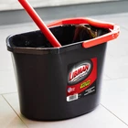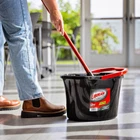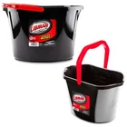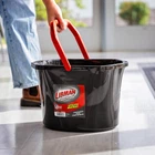 Libman High Power utility bucket with red handle. Made of polypropylene for superior resistance to cleaning chemicals. Bucket has dual pour spouts to help ensure no spillage when pouring from either side. Fluid measurements molded inside the bucket for precise mixing of cleaning chemicals. Measurements: 10.25” tall with a width of 16” and depth of 10”. Molded in black to hide any stains or discolor due to harsh cleaning chemicals. Comfortable ergonomic handle that protects the users’ hands when bucket carrying. 3.5 gallon capacity. Solid Polypropylene one piece molded bucket with handle Capacity of 3.5 gallons, 13.25 liters, 448 ounces Comfortable ergonomic handle for ease of carrying even with a full bucket Fits all standard sponge and wet mops with a 15.5 inch by 9.5 inch opening and total dimensions of 10.94 inches by 11.56 inches by 15.81 inches Also can be used to carry household tools like sponges and rags Heavy duty 12 melt polypropylene construction for both the bucket and the handle.