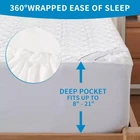 Color White Size King Fabric Type 40% Rayon Made from Bamboo + 60% Polyester Special Feature Water Proof About this item 100% WATERPROOF MATTRESS PROTECTOR: Do you often bothered by the fact that mattress covers are not waterproof, 40% rayon derived from bamboo mattress protector is fortified with a premium TPU membrane, Through thousands of tests, it can create an invisible barrier against sweat, urine, and spills. Enjoy a cleaner and cooler sleep environment while safeguarding your valuable mattress. 3D AIR FABRIC: Our mattress protector features a 3d air fabric surface, which contains 40% rayon made from bamboo fiber, 60% polyester, experiences superior breathability, unmatched smoothness, and a quilted top layer without any noise when you turn over, ensuring you a peaceful night's sleep. DEEP POCKET & ELASTIC SKIRT: Snugly fitting mattresses from 8 to 21 inches, our deep pocket mattress pad cover provides comprehensive 360° protection. Say goodbye to shifting and discomfort, suitable for children, pets, pregnant women, and the elderly. DURABLE & EASY TO CARE: Mattress protector waterproof has tested as OEKO-TEX STANDARD 100 certified and does not contain any harmful substances or chemicals. This waterproof mattress protector remains waterproof even after being twisted and machine-washed many times. has stretchy skirts that fit up to 8- 21'' mattresses. DIRTPROOF & EASY TO CLEAN: This mattress protector is resistant to dirt and it can be machine washable with cold water on a gentle cycle, and tumble dry on low heat(not exceed 55°C/130°F). Do not dry clean, do not iron, do not bleach. Warm Tips: The mattress protector is vacuum packaged, put it in the sun and pat gently for a few times for fluffy.