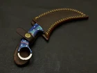 Beautiful Handmade Hunting Knife Designed with superb Handle Superb Looking Handle of this Unique Knife is made of Beautiful Hard Wood & Rose Wood Scales fastened with steel pins and strong epoxy for life time durability. Blade has given excellent heat treatment and rock well hardness of the blade along its edge is 50 to 54 and along the spine is 42-45. ''All of our knives are 100% hand crafted. True quality material used to form the blade. The handle materials, blade steels, and leather sheaths are made professionally with no expense spared. Great handle fitting, exception sharp edge, nicely balanced grasp FEATURES & SPECIFICATIONS:- Total Length: 8.5" Blade length: 4.5" Handle Length : 4" Blade Material: Damascus Blade Hardness: 50-58HRC on Rockwell scale Handle Material: Rose Wood Sheath: Genuine Cowhide Leather Please note all buyers:- We are using stock knife pictures, may be you "ll receive little bit vary instead the pictures. Thank you!! Complimentary gift messages *Gift wrapping service available for minimal additional fee ADD ONS: *Custom orders for 10 or more pieces. You can choose & submit your own handle or design. LIFETIME WARRANTY No premium knife is complete without a lifetime warranty; our masterpiece knife is fully covered for life, We do sell wholesale, please contact us for special discounts on bulk orders. FEEDBACK POLICY: YOUR FEEDBACK IS VERY IMPORTANT FOR US, IF THEIR IS ANY KIND OF PROBLEM PLEASE GIVE US OPPORTUNITY TO SORT THE ISSUE
