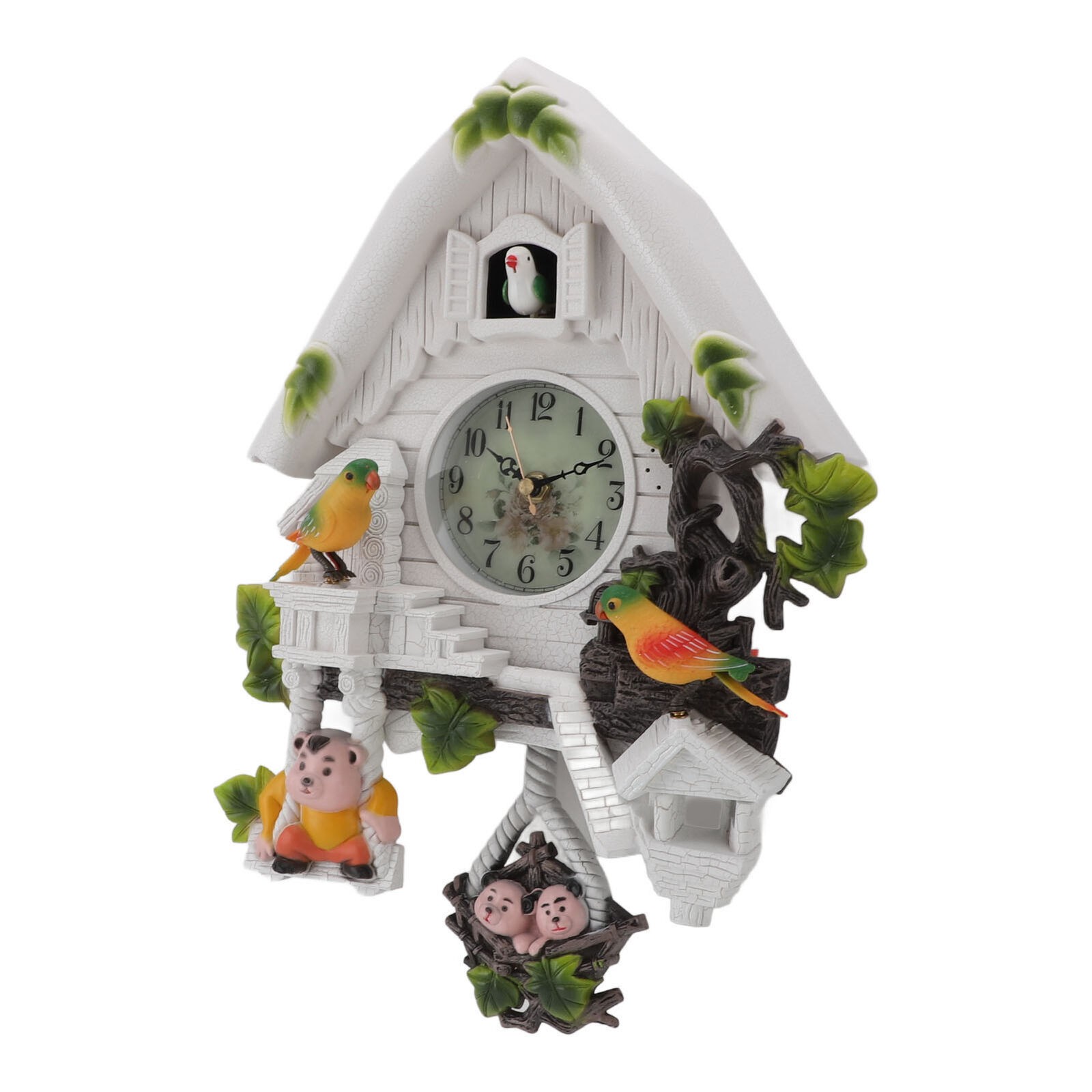 Feature: 1. EUROPEAN STYLE: The cuckoo tree house clock features a classic design, European style, white color decoration, adding to the home ambient. Suitable for hanging in various scenes. 2. CUTE AND UNIQUE: Adopting cuckoo tree wall clock design, cute and unique, attracting children's attention. Exquisite craftsmanship, excellent choice for home decoration. 3. SOUND CONTROL CHILDREN'S CLOCK: Sound control children's clock, suitable for placing in the living room or children's room. cuckoo birdhouse clock adopts silent , which ensures a quiet sleeping or working environment. 4. ACCURATE TIME, WHOLE TIME CHIMING: Cuckoo wall clock is accurate time with whole time chiming function, convenient for life. You will never miss an important moment again. 5. PREMIUM MATERIAL: The stylish modern wall clocks are made of premium plastic and ABS material, thick and , scratch resistance and long service life. Specification: Item Type: Cuckoo Clock Material: Plastic, ABS Weight: Approx. 994g/35.1oz Size: Approx. 27x9x40cm / 10.6x3.5x15.7in Color: White Battery: 5x1.5V AA Battery (Shipped Without Battery) Package List: 1 x Cuckoo Clock (Battery Not Included) 3 x Decorative Accessories Note: Manual measurement please allow some error.