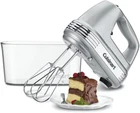 The **Cuisinart HM-90BCS Power Advantage Plus 9-Speed Handheld Mixer** is a versatile kitchen tool that combines powerful performance with convenient storage. Equipped with nine speed settings, it smoothly transitions between tasks from delicate mixing to heavy-duty blending. Its one-touch control makes switching speeds easy, while the 220-watt motor delivers consistent power. Included are beaters, dough hooks, a chef's whisk, and a spatula, all neatly stored in a snap-on case for easy organization. Ideal for a range of recipes, it simplifies baking and cooking preparation.