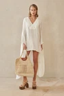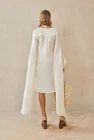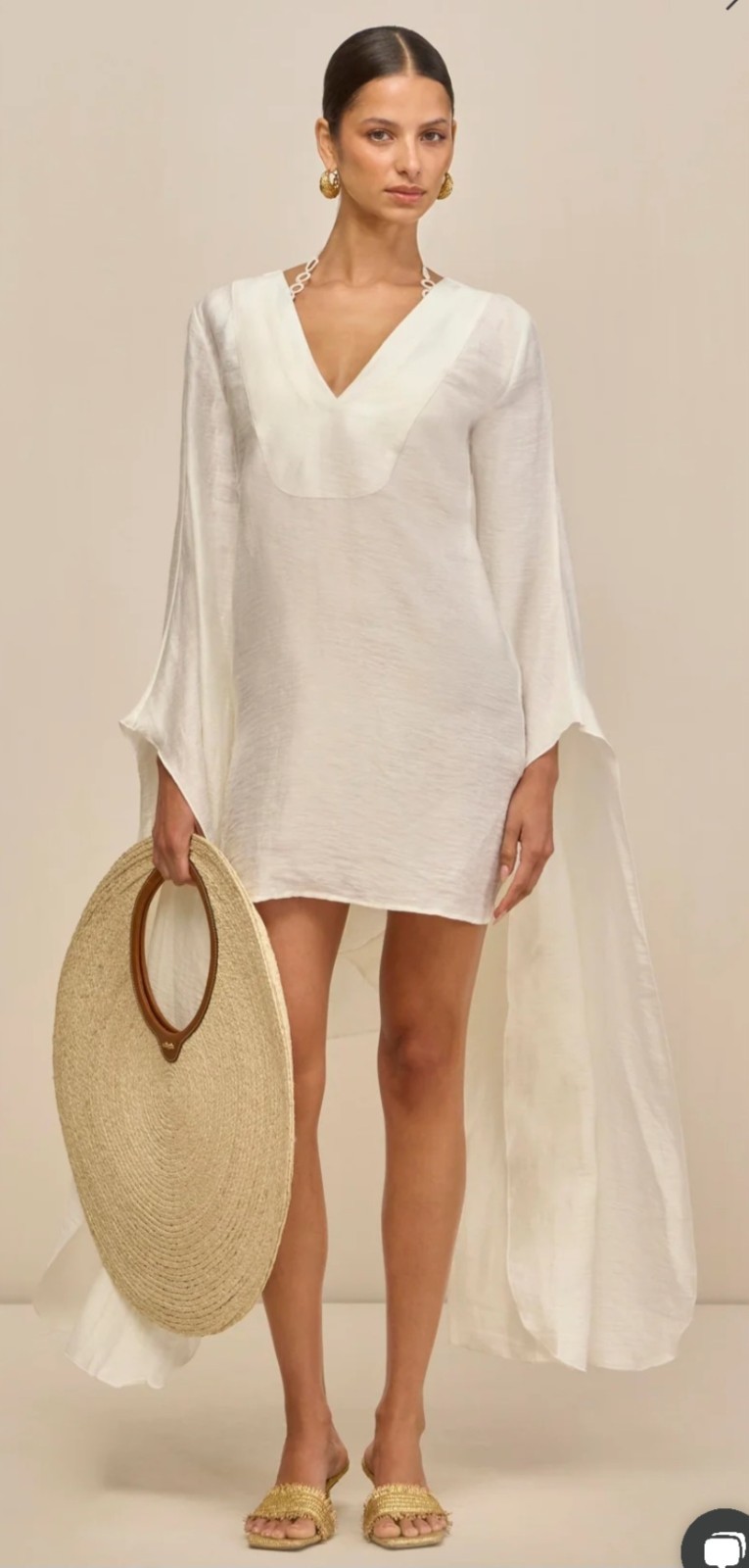 Cut from our creamy silk linen fabric, this Kaftan shape coverup exudes a sensation of bold elegance. Slightly sheer, she was designed to throw on over a swimsuit for a look that takes you from beachside lounging, to chic evening soirées. Rishima is truly a head-turner with her extra-long, cascading sleeves that have undulating movement down the body. Creating a dramatic and voluminous look, Rishima’s deep v-neck silhouette is classically feminine. 53% Linen, 47% Silk Dry clean only Currently almost sold out on website. Fabric label removed for comfort. Metal Cult Gaia label intact. Sized for Small/Medium Tags removed, unfortunately never worn.
