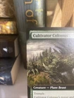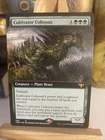Cultivator Colossus is a Mythic rare Creature card from Magic: The Gathering's set Innistrad: Crimson Vow. It is a Plant Beast with a cost of 4ggg and features Extended Art. Illustrated by Antonio José Manzanedo, the card has no specified Attack value but has a Defense of *. The card number is 386 in the set and it is in English.