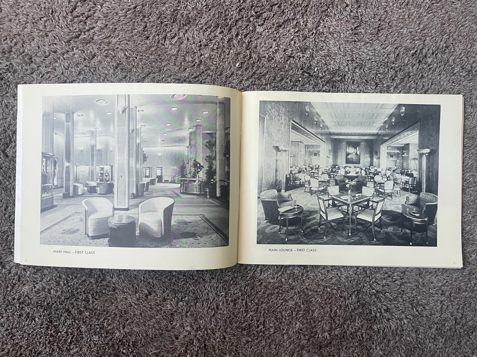 Cunard Line Cunard's Wonder Ships Queen Elizabeth / Queen Mary Deluxe Booklet 1960 A pictorial souvenir of the "Largest Superliners in the World" - Queen Elizabeth & Queen Mary Published for privately and sold at their concession on the New York Piers Brilliant cover image of the two liners passing at sea by noted maritime artist C. E. Evers. Printed privately circa 1960 Booklet Format 50 Pages plus covers Numerous B&W Photos of both liners Interior & Exterior Photos Fleet List Facts & Figures General Information Leatherette Embossed Covers Approx. 8-1/2" x 11" 50 Pages GOOD CONDITION Age-appropriate wear See Photos Free Shipping - USA $15.00 USPS Air Mail - International Combine shipping available for multiple purchases I have other tra nsportation related posters, prints and memorabilia listed.