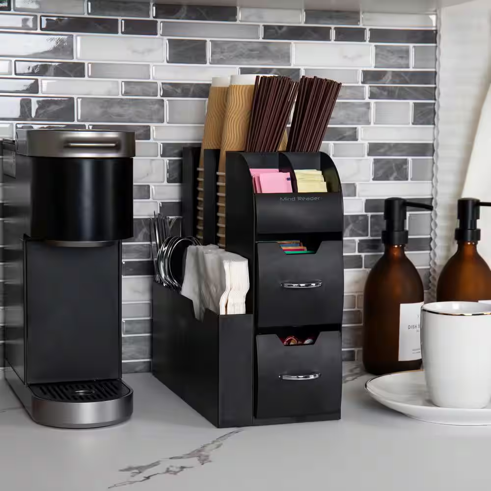 Cup and Condiment Station, Countertop Organizer, Coffee Bar, Stirrers, 5.35 In.