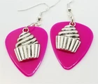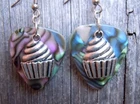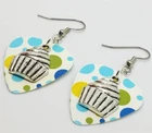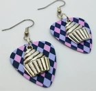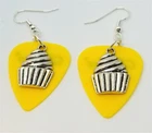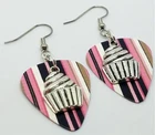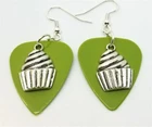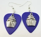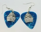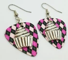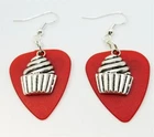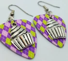 These are made with real guitar picks. That means that the back of the guitar picks may have the emblem of the guitar pick company printed on it. I also used a cupcake charm on each earring. PLEASE NOTE: These are available in many guitar pick colors and patterns. They are all listed in the drop down menu. They are 2.25 inches long from the top of of the ear wire curve to the very bottom of the whole earring, and they have surgical steel earwires (nickel free, hypoallergenic). To get an idea of how long the earrings will be on you, start from where your ear is pierced and measure down. All of my jewelry and accessories are handmade by me. Made in and shipped from Lubbock, TX. USA Flat Rate Shipping. You pay for shipping on the first item, all additional items have no additional shipping fees.