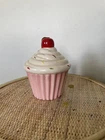 Cupcake Coin Bank Vintage Cupcake With Sprinkles Ceramic Coin Bank, Pink Cupcake. Condition is Used. Shipped with USPS Ground Advantage.
