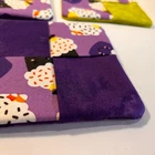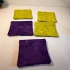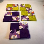 Cupcake Green & Purple Coasters 4" Square Set of 5 - Two with Green as the main color and Three with Purple as the main color Can also be used as Kitchen Trivet/ Hot Pads Made of Fabric Double sided with a Colorful Happy Cupcake Great for the office/bedroom/kitchen/dining room Handmade by my sister
