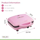 About this item Bakes 12 Full Size Cupcakes Nonstick Baking Plates Latching Lid Power and Ready Lights Uses 1200 Watts Special Feature:Manual Color:Pink Material:Plastic Brand:Babycakes Product Dimensions:13"D x 13. 5"W x 5. 5"H Wattage:1200 watts Item Weight:0. 01 Ounces : : :
