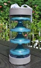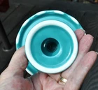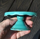 Set of 4 cupcake stands. Aqua with gold band at the base. Original packaging, never used. Handled and shipped with care. These are the exact items you will receive.