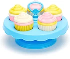 Made in US Made with Recycled Plastic No BPA, phthalates, PVC Dishwasher Safe Indoor and Outdoor Play Whip up a batch of sweet treats full of imagination with the Green Toys™ Cupcake Set! Little bakers can practice colors and counting, develop fine motor skills, and host make-believe parties for their stuffed animals and friends. This 16 piece mix-and-match set includes frosting, cakes, and cupcake liners for 5 complete cupcakes, plus a cake stand display. The cake stand is perfect for presentation and storage, and can even be used to serve actual cupcakes. Made in the USA from 100% recycled plastic with no BPA, phthalates, or PVC. Cupcake pieces are dishwasher safe. Meets FDA food contact standards. Packaged with recycled and recyclable materials printed with soy inks.