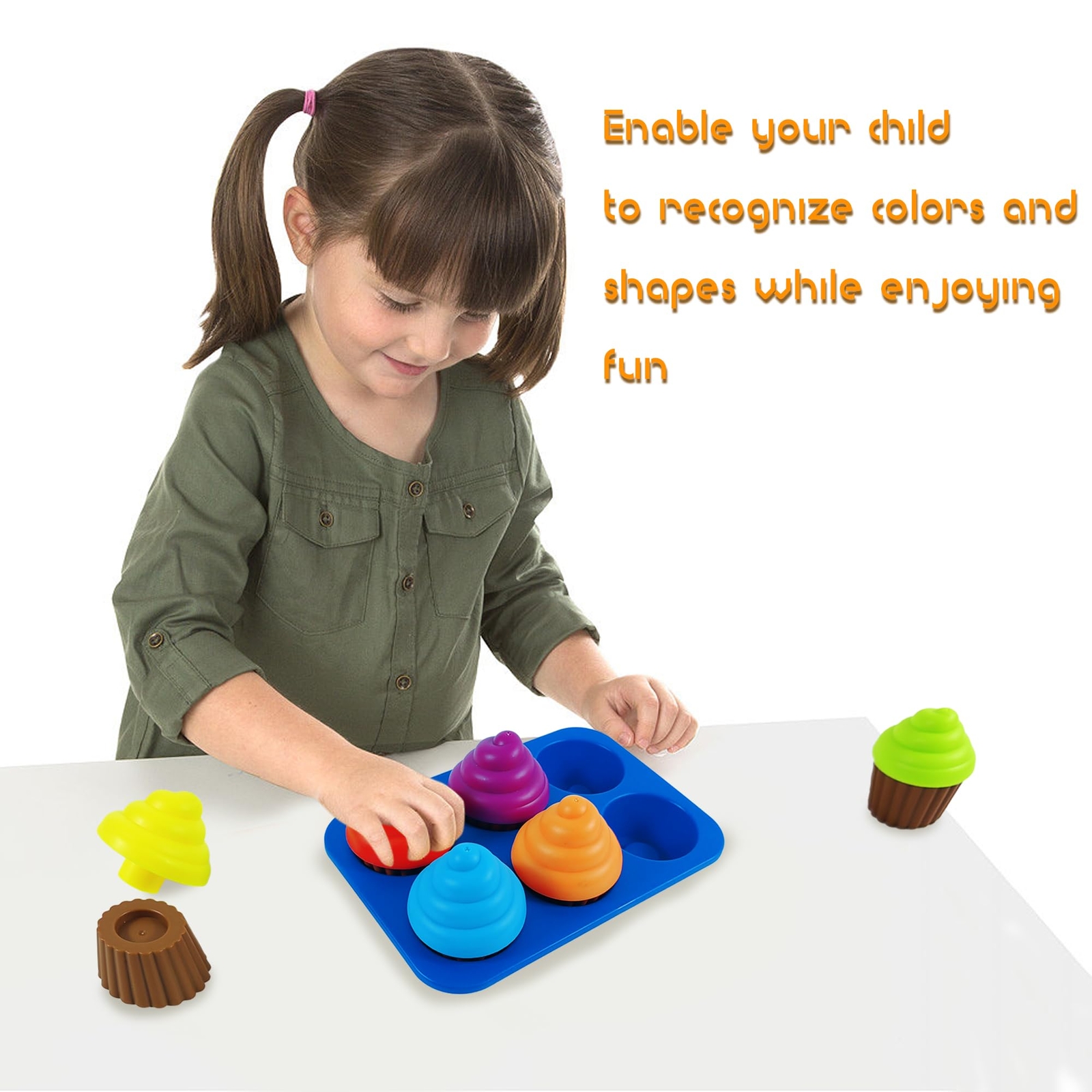 Fine motor toys for toddlers 1-3. Preschool learning toys designed with cupcake-shaped baby puzzles, color sorting fun to develop fine motor skills and counting, shapes, and colors. Pretend play for toddlers 1-3. Cupcake designed toddlers toys thats perfect for pretend play, fine motor, sensory development, hand-eye coordination, problem-solving, manipulatives for preschool . Preschool manipulatives for toddlers. Our shape sorter 18 month toys have countless learning opportunities through play with cupcakes of different shapes,matcg both side to earn rewards hexagon, heart shape and triangle, our shape puzzle helps your child with color and shape recognition while having hours of fun Durable sensory puzzles shape sorter toy, develops toddlers’ fine motor skills as they use their fingers to slide each cupcake into the right place, strengthen their sense of logic learning shapes. Cupcake game can keep your baby entertained: shape sorting montessori puzzle, pretend play toys, finding objects exercises - all designed to provide hours of interactive educational fun!