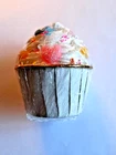 This multicolor heart-shaped cupcake candle made with soy wax. It is scented with assorted fragrances and is ideal for Valentine's Day or love-themed occasions. The candle has a burning time of more than 5 hours and measures approximately 2.95 inches in height and 2.76 inches in width. It comes as a single unit and is not personalized or customized. Single Wick
