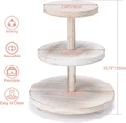 Cupcake Stand Round Wood Cake Stand with Tiered Tray Decor Rustic Cake 3 Tier Product Description: Safely & High Quality & Reusable : 3 Tier Round Wooden Cake Tier Stand, made of high quality natural solid wood, sturdy and durable. The thickened Tung wood is very sturdy and durable for long term use, corrosion resistant, not easily deformed and has a unique natural texture. Product Details- Dimensions : Bottom tray Día: 11.81"; Middle tray Día: 9.06", upper tray Dia:7.09"; Height: 13.78". Easy to Install and Remove : Comes with 3 round plates, 2 center poles.3 round ball legs. This cupcake display is easy to install ,you don't need any tools, Takes LESS THAN 1 min to assemble ,Please refer to the product page for the installation method. Can be disassembled when not in use for easy storage and portability. Exquisite Small Round Legs Design : Exquisite Workmanship, each wooden cake stands with 3 rounded legs Each shelf has been carefully crafted to ensure stable placement on the tabletop, It’s reliable and safe to use bringing your cake, cupcake ,candle or crafts a delicate appearance. Multifunctional :Not only can it be used to hold and display your cakes, pastries, desserts, cupcakes, cookies and fruit, to display cake scented candles, but also glass cups, small sculptures, small lighting, small plants, pottery. It can be used at all types of events and parties such as afternoon tea, baby showers, birthday, graduations, engagement, weddings, Christmas, thanksgiving, perfect decoration for farmhouse, home and more