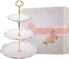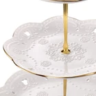 BonNoces 3-Tier Porcelain Embossed Cupcake Stand - Pure White Rimmed with Gold Dessert Cake Stand - Pastry Serving Tray Platter for Tea Party, Wedding and Birthday About this item: Pure white porcelain relief design cake stand, with a delicate sturdy silver stents, can show your carefully prepared dessert snacks and cakes, also an attractive ornament on the table. Unique and exquisitely built, quality and sense of art coexist, brings elegance and beauty to you. The dessert stand is made of high-quality sturdy porcelain, it is food safe and lead free. And the diameter of platters: 6'', 8'', 10''. Tall 14.5". Smooth glaze surface easy to clean, simple assembly and disassemble. The 3-tier of design serving tray, not only can save space, put more snack desserts, but also make your table clean and tidy. And the unique silver ring bracket design shows charm, which can be carried and moved more conveniently. Delicate embossing decorative pattern and crafted wavy flower edge tiered dessert stand, it's a great way to display cupcakes, appetizers, fruit, brownies, desserts, perfect for tea party, wedding, baby showers, Christmas or for home decor. Beautiful and elegant cupcake stand, combining with elegant decorative style, give you a sensory experience that you never had. Each ceramic cake rack is equipped with a beautiful gift box which is a best gift for your family and friends. PAYMENT safe payment via ebay SHIPPING Fast and free shipping RETURN 30 Day's returns