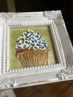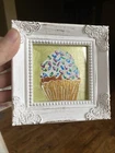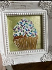 Cupcake Still Live Framed White original Painting , Miniature Small Mini