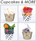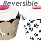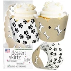 These reversible dog paw print, fire hydrant cupcake wrappers are made in the U.S.A. with high quality paper and soy-based inks. Every cupcake wrap in the package you receive is reversible and has two designs. One side has a black and white animal paw print pattern, great for a puppy party, cat or kitten theme birthday, or a fire hero rescue patrol party. The other side of each wrapper is white with hand designed art, perfect for a fireman party theme or a dog party. The paper cupcake holders are quickly assembled with a simple tab and slot closure and are intended to wrap around a baked cupcake, be a pretty collar for a muffin, a drink cup sleeve, or even favor packaging. Adjustable to three sizes, Dessert Skirtz paw print cupcake wrappers fit most standard cupcakes whether homemade or from a bakery. These are great for a animal theme party, adding charm to your table or cupcake tower. Your pawty will be a dog-gone good time with these quick and easy party table accessories. They make fun decorations for your dessert buffet or birthday cupcakes and will make such an impact at your event. Use Dessert Skirtz to wrap cups, then fill them with appetizers, sundaes, or party favors. These versatile cupcake wrappers are fabulous party supplies for so many occasions from an animal theme birthday party to a cub scout banquet! Perfect for an kitten themed party for a girl or a fire station party for a boy! Use the paw print side alone, or the fire hydrant side, or use them together, as they perfectly complement each other. Quick & easy cupcake decorating - NOT FOR BAKING. No need for elaborate frostings or complicated cupcake toppers, simply skirt your cupcakes to make a stunning birthday or baby shower cupcake tower with cupcakes from your bakery or homemade goodies. Take your dog party dessert table or kitty cupcake display to the next level! So much style for so little effort - the easy way to host parties that any animal lover will enjoy! Reversible - NOT CUPS - they're better! Bottomless wraps give you styling flexibility that baking cup liners can't. Each high-quality wrap has 2 designs - black & white paw prints on one side & hand designed bone & heart design on the other to complement many fun party themes. Throw a pawty for your favorite pooch pals, fire safety week, animal themed baby shower, even mom would love an I "Woof" You Mother's Day event! These make it so easy to celebrate moments & create beautiful memories! Adjustable & easy assembly - 3 sizes to fit most standard cupcakes. Not for larger or jumbo cupcakes. (Refer to our sizing image to make sure your cupcake will fit.) Easily assemble by sliding tab into the slot & drop in your party treat. The quick & easy way to decorate cupcakes and other party foods. Whether you're a professional party planner or just love to host, you'll appreciate how these wrappers make a bowWOW impact with minimal effort. High quality & made in the U.S.A.- Heavy-weight, recyclable paper is specially coated to keep your puppy or kitten theme cupcake tower or doggy dessert display looking great for hours. Cover up unsightly baking liners to make ordinary cupcakes look professionally decorated in seconds. Party ideas for these paw print wrappers are endless! A quick & easy way to decorate virtually any small party food or appetizer to fit your theme. Versatile - not just for cupcakes - when wrapped around small, plastic party cups, they become so much more! These bottomless wraps make cute drink sleeves, festive single serve treats or appetizers & decorate party favors for unique gifting! They also make fantastic holder for napkins, decor for flowers or table centerpieces & can be attached along the edge of tables or bars for a scalloped garland. Add these decorations to your next event for fun & unique style!