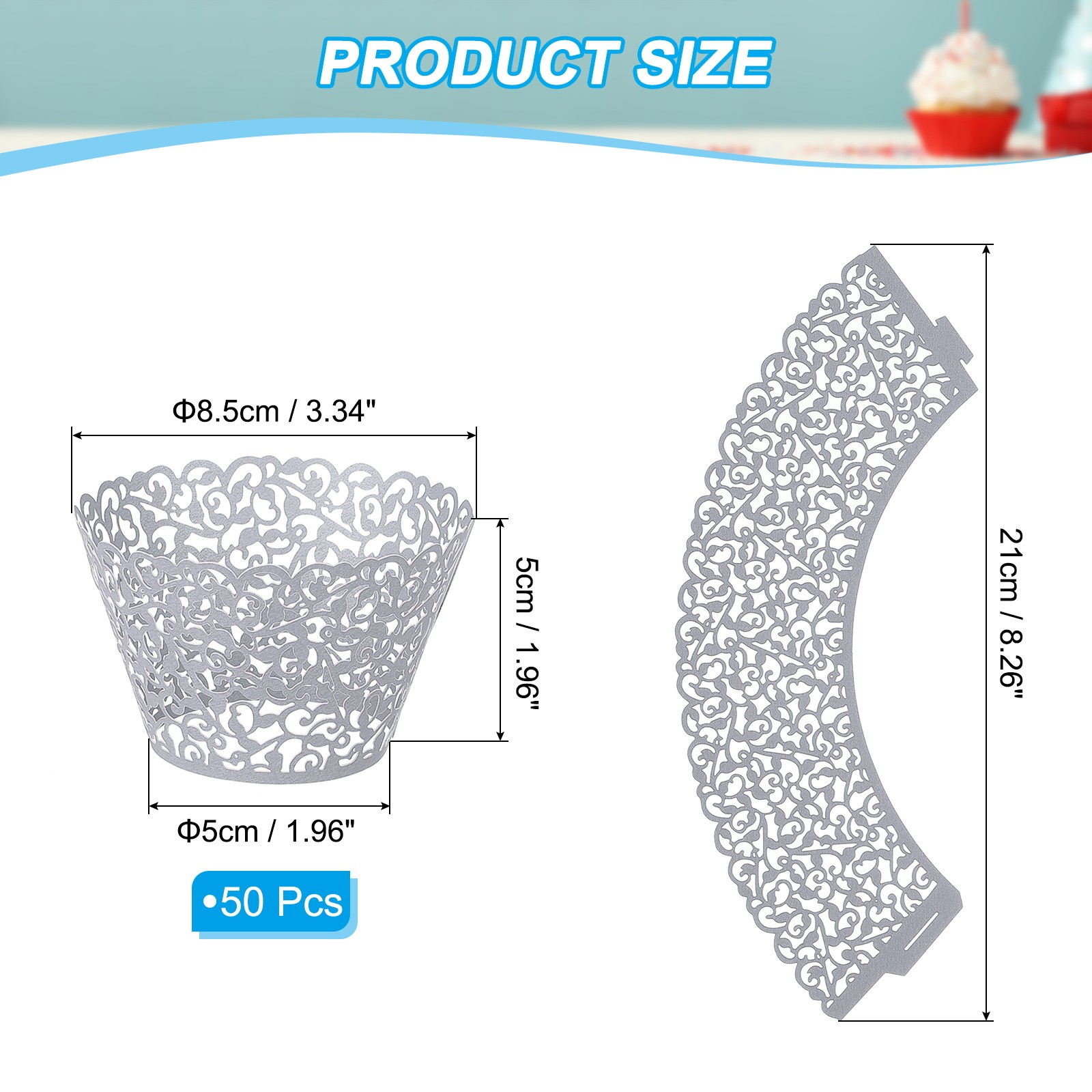Document These paper cupcake wrappers are suitable for decorating and protecting cupcakes at events, bakeries, or cafes.Specification:Color: GreyMaterial: PaperExpand Size:21 cm x 8.5 cm x 5 cm / 8.26 x 3.34 x 1.96 inch(L*W*H)Packing List: 50pcs x Cupcake WrappersAdvantageThese cupcake wrappers are in rich color, great for decorating your cupcakes and keeping your cupcakes tower or looking great for hours. Easy to use, make a finished look of your cupcakes in seconds on your anniversary, birthday, wedding, and party.InstructionThere is a slot for the standard cupcakes. Slide the tab into the slot for assembling the wrapper. Bottomless design, for covering the baking liners on cupcakes or baked goods, drink sleeves, and cupcake collars.NOTE:Not resistant to baking, please do not put it into the oven. Cupcake Wrappers Paper, 50 Pack Baking Cups Standard Vine Decor, Grey These paper cupcake wrappers are suitable for decorating and protecting cupcakes at events, bakeries, or cafes. Specification: Color: Grey Material: Paper Expand Size:21 cm x 8.5 cm x 5 cm / 8.26 x 3.34 x 1.96 inch(L*W*H) Packing List: 50pcs x Cupcake Wrappers Advantage These cupcake wrappers are in rich color, great for decorating your cupcakes and keeping your cupcakes tower or looking great for hours. Easy to use, make a finished look of your cupcakes in seconds on your anniversary, birthday, wedding, and party. Instruction There is a slot for the standard cupcakes. Slide the tab into the slot for assembling the wrapper. Bottomless design, for covering the baking liners on cupcakes or baked goods, drink sleeves, and cupcake collars. NOTE: Not resistant to baking, please do not put it into the oven. Hot Item Payment 1.We accept eBay payment . 2.Payment must be received within 7 business days of auction closing. Shipping 1.We ship to your eBay or Paypal address. Please make sure your eBay and Paypal address is correct before you pay. 2.Items will be shipped within 1-3 business day when we received payment. 3.Delivery time depends on destination and other factors. Description Policy Cupcake Wrappers Paper, 50 Pack Baking Cups Standard Vine Decor, Grey These paper cupcake wrappers are suitable for decorating and protecting cupcakes at events, bakeries, or cafes. Specification: Color: Grey Material: Paper Expand Size:21 cm x 8.5 cm x 5 cm / 8.26 x 3.34 x 1.96 inch(L*W*H) Packing List: 50pcs x Cupcake Wrappers Advantage These cupcake wrappers are in rich color, great for decorating your cupcakes and keeping your cupcakes tower or looking great for hours. Easy to use, make a finished look of your cupcakes in seconds on your anniversary, birthday, wedding, and party. Instruction There is a slot for the standard cupcakes. Slide the tab into the slot for assembling the wrapper. Bottomless design, for covering the baking liners on cupcakes or baked goods, drink sleeves, and cupcake collars. NOTE: Not resistant to baking, please do not put it into the oven. Hot Item Payment 1.We accept eBay payment . 2.Payment must be received within 7 business days of auction closing. Shipping 1.We ship to your eBay or Paypal address. Please make sure your eBay and Paypal address is correct before you pay. 2.Items will be shipped within 1-3 business day when we received payment. 3.Delivery time depends on destination and other factors.