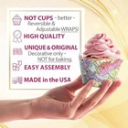 These travel theme cupcake wrappers are made in the U.S.A. with high quality paper and soy-based inks. Every cupcake wrap in the package you receive is reversible has designs. side has a map pattern, the other side is a kraft color with a fun sketched bomber airplane and a classic red and blue airmail stripe. The paper cupcake holders are quickly assembled with a simple tab and slot closure and are intended to wrap around a baked cupcake, be a pretty collar for a muffin, a drink cup sleeve, or even favor packaging. Adjustable to three sizes, Dessert Skirtz wanderlust cupcake wrappers fit most standard cupcakes whether homemade or from a bakery. These are great vintage travel theme party supplies for adding adventure and charm to your table or cupcake tower. Take your flying theme party to new heights with these quick and easy party table accessories. They make fun decorations for your travel themed dessert buffet or wedding cupcakes and will make such an impact at your event. Use Dessert Skirtz to wrap cups, then fill them with appetizers, sundaes, or party favors. These versatile cupcake wrappers are fabulous party supplies for so many occasions from an airplane theme baby shower to a wanderlust wedding! Perfect for an adventure themed bridal shower, a 1st birthday party for a boy, or a graduation party! Use the map side alone, or the airplane side, or use them together, as they perfectly complement each other. Quick & easy cupcake decorating - NOT FOR BAKING. Wrap these decorative liners around your cupcakes for an instant upgrade & make them look professionally decorated. They're reversible with 2 designs on every wrapper - airplane travel art on side & an antique vintage map on the other. Perfect for a wedding or bridal shower, baby shower or retirement and graduation parties to celebrate new adventures. Or any travel, airplane or wanderlust themed party. Add tons of style for minimal effort. Reversible - NOT CUPS - they're better! Decorative wraps offer styling options baking cup liners can't. These feature 2 reversible designs any globetrotter would adore! The antique travel map & airplane art is perfect for sending off a graduate to start a new adventure, hosting a corporate retreat, a going away party for neighbors, or an around the world hot air balloon theme birthday party. These dessert wraps will add Instant personality to your next event and make it feel extra special. Adjustable & easy assembly - 3 sizes to fit standard cupcakes - another great benefit to bottomless dessert wraps! Not for larger or jumbo cupcakes. Refer to our sizing image to make sure your cupcake will fit. To assemble, simply slide tab into slot & drop in your party treat for a quick & easy way to make your table look professionally decorated. Whether you're a professional party planner or just love to host, you'll appreciate how our wrappers create stunning style with minimal effort. High quality & made in the U.S.A.- Heavy-weight, recyclable paper is specially coated to keep your cupcake tower or dessert display look fresh and fabulous for hours. Cover up unsightly baking liners to make ordinary cupcakes look professionally decorated in seconds. These cute food wrap papers are a quick & easy way to decorate virtually any small party food or appetizer to fit your theme. Versatile - not just for cupcakes - when wrapped around small, plastic party cups, they become so much more! These bottomless wraps make cute drink sleeves, festive single serve treats or appetizers & decorate party favors for unique gifting! They also make fantastic holder for napkins, decor for flowers or table centerpieces & can be attached along the edge of tables or bars for a scalloped garland. Add these decorations for chic style at your next event and make it feel extra special!